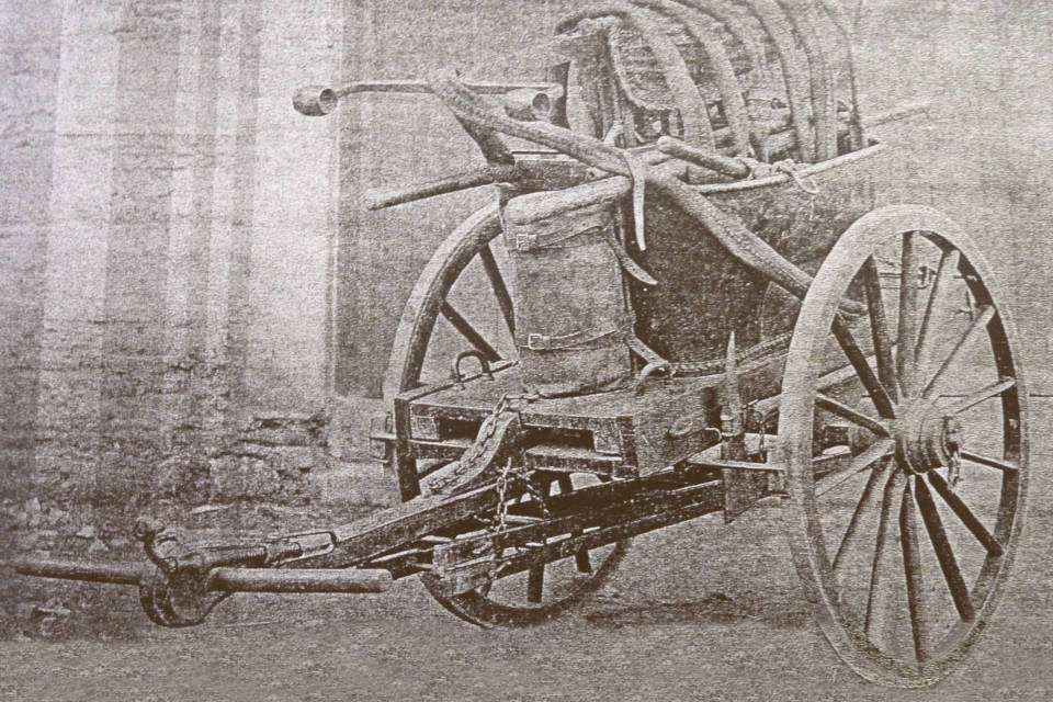 Les pompes étaient des pompes à bras, de sorte que la pression dans les tuyaux ne dépendait que de la force des hommes qui manoeuvraient la pompe. On était encore bien loin de nos lances à incendie modernes, et il faut s’imaginer que pour atteindre les étages supérieurs, il fallait faire tenir les tuyaux sur des perches dont l’extrémité était munie d’une fourche en fer. C’est ce que nous explique très bien la délibération municipale: